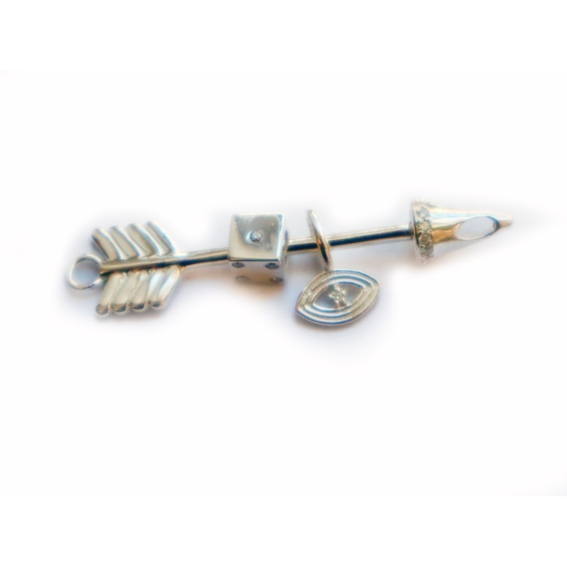 Silver arrow-shaped pendant with eye, diamond-set arrow