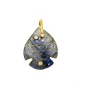 Pendentif Fish, motif poisson, en labradorite, oeil diamant et pendant en plaqué or.