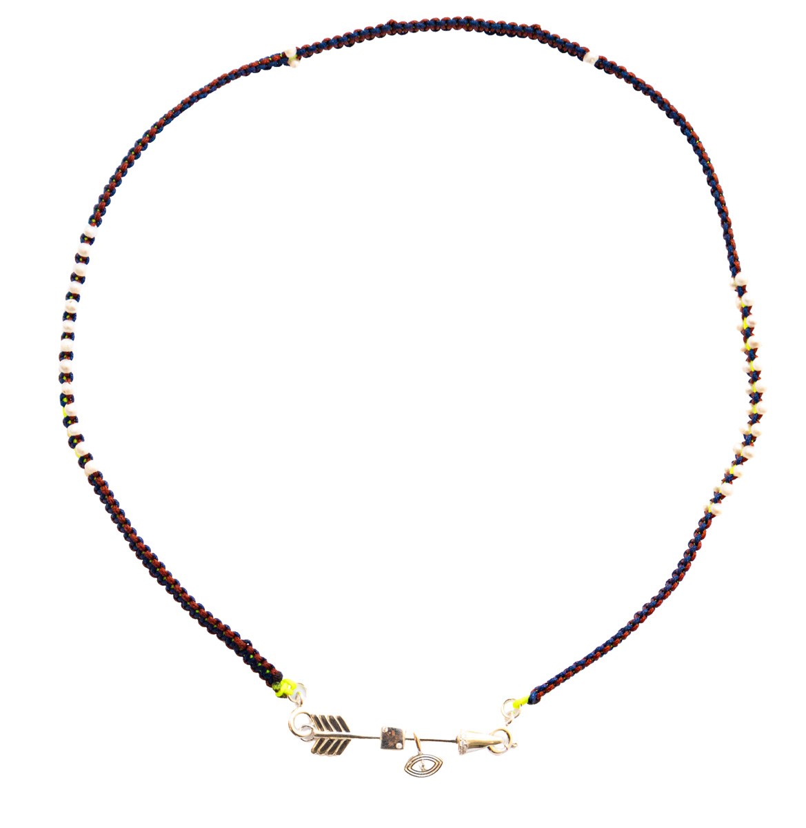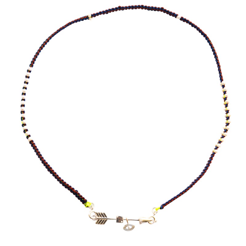 Navy and burgundy Scoubidou necklace WITH silver arrow