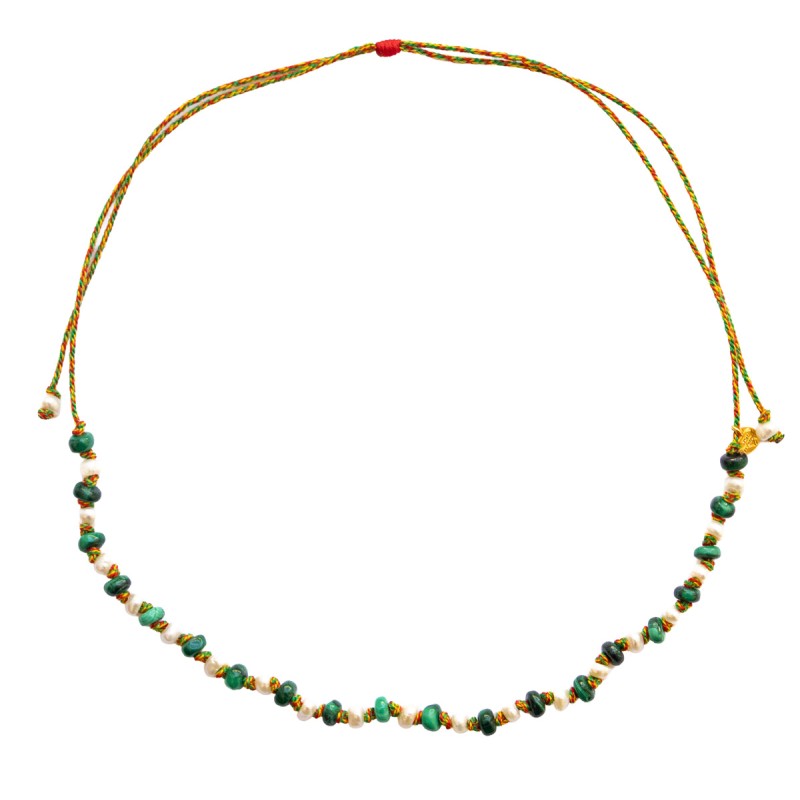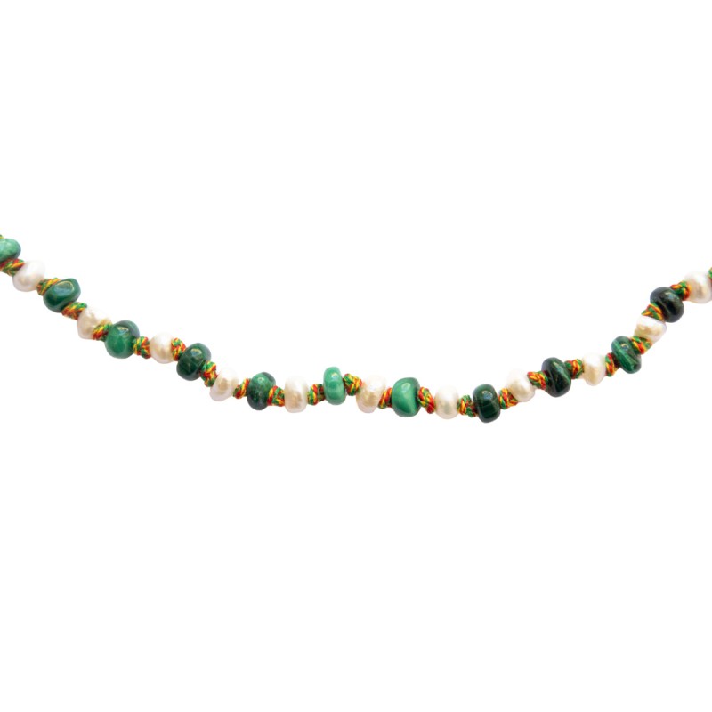 Necklace Candies in natural freshwater pearl and malachite