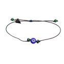 Lucky charm bracelet with a blue eye and malachite on an adjustable navy blue cord.