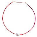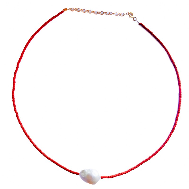 Collier petites perles graines Africaines rouges et perle d'eau douce
